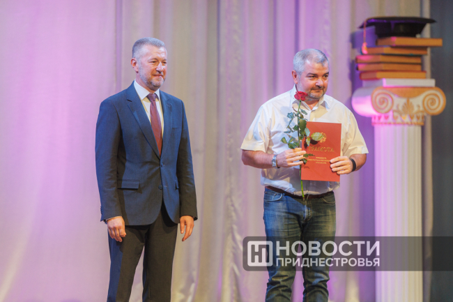 В канун праздника Владислав Соколов вручил государственные и ведомственные награды. Так, медали «За отличие в труде» удостоен старший преподаватель кафедры истории Института государственного управления социально-гуманитарных наук Сергей Симоненко. С 2012 года он преподаёт историю Отечества, России и Приднестровья.