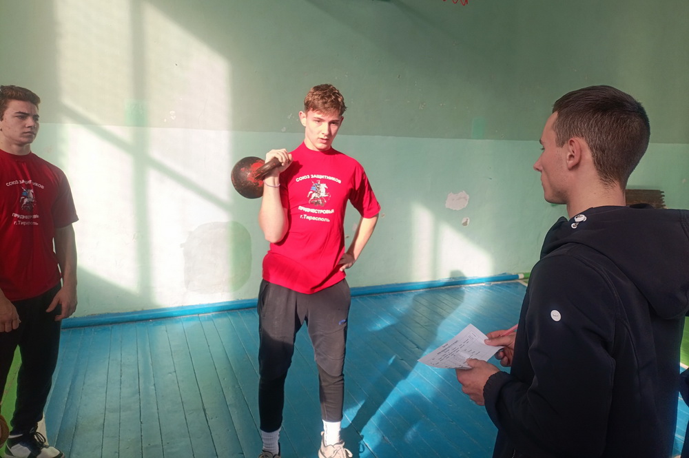 Старшеклассники подтягивались на перекладине, поднимали 16-килограммовую гирю и проходили полосу препятствий