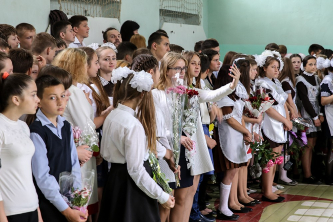 Из-за погоды праздник проходил не на улице, а в спортзале школы, что отнюдь не повлияло на традиции подобных мероприятий – было и поднятие флага, и хоровое пение гимна, и передача символического факела знаний первоклассникам, и шуточного дерева со шпаргалками 11-классникам. А ещё было много слёз: плакали родители, украдкой вытирали глаза учителя, да и сами выпускники, читая прощальные стихотворения, тоже не смогли сдержать слёз.
