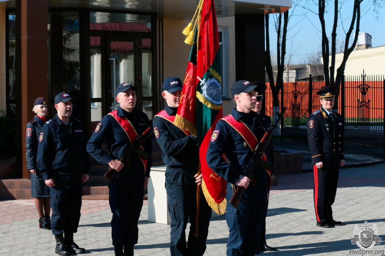Среди территориальных подразделений МВД ПМР образцовым стало Управление внутренних дел г. Тирасполь. Руслан Мова вручил переходящее знамя начальнику столичной милиции Сергею Кирману.