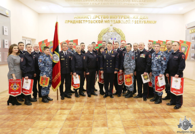 Среди территориальных подразделений МВД ПМР по итогам работы прошлого года образцовым стало Управление внутренних дел г. Тирасполь. Начальнику столичной милиции Сергею Кирману Руслан Мова вручил переходящее знамя.
