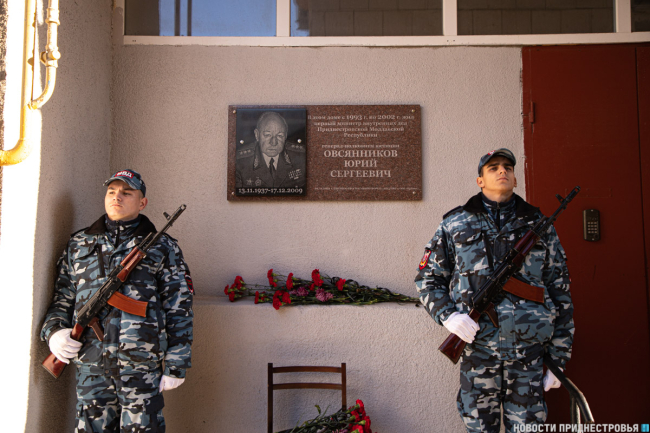 Тирасполь, 12 ноября. /Новости Приднестровья/. В Тирасполе на доме № 2 по улице Милёва открыли мемориальную доску генерал-майору милиции, генерал-полковнику юстиции Юрию Овсянникову. С 1992-го по 1994 год он возглавлял Министерство внутренних дел ПМР, с 1994-го по 2000-й – Министерство юстиции ПМР.