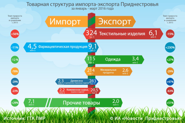 Тирасполь, 19 апреля. /ИА «Новости Приднестровья»/. За первые 3 месяца текущего года, по сравнению с первым кварталом 2015-го, внешний товарооборот республики снизился более чем на 25% – с 451,6 млн долларов до $ 336,7 млн. По данным таможенной службы, снижение по импорту составило более $113 млн (-35%), экспорт приднестровских товаров сократился незначительно (примерно на 1,5%). При этом в структуре внешней торговли импорт по-прежнему опережает экспорт.