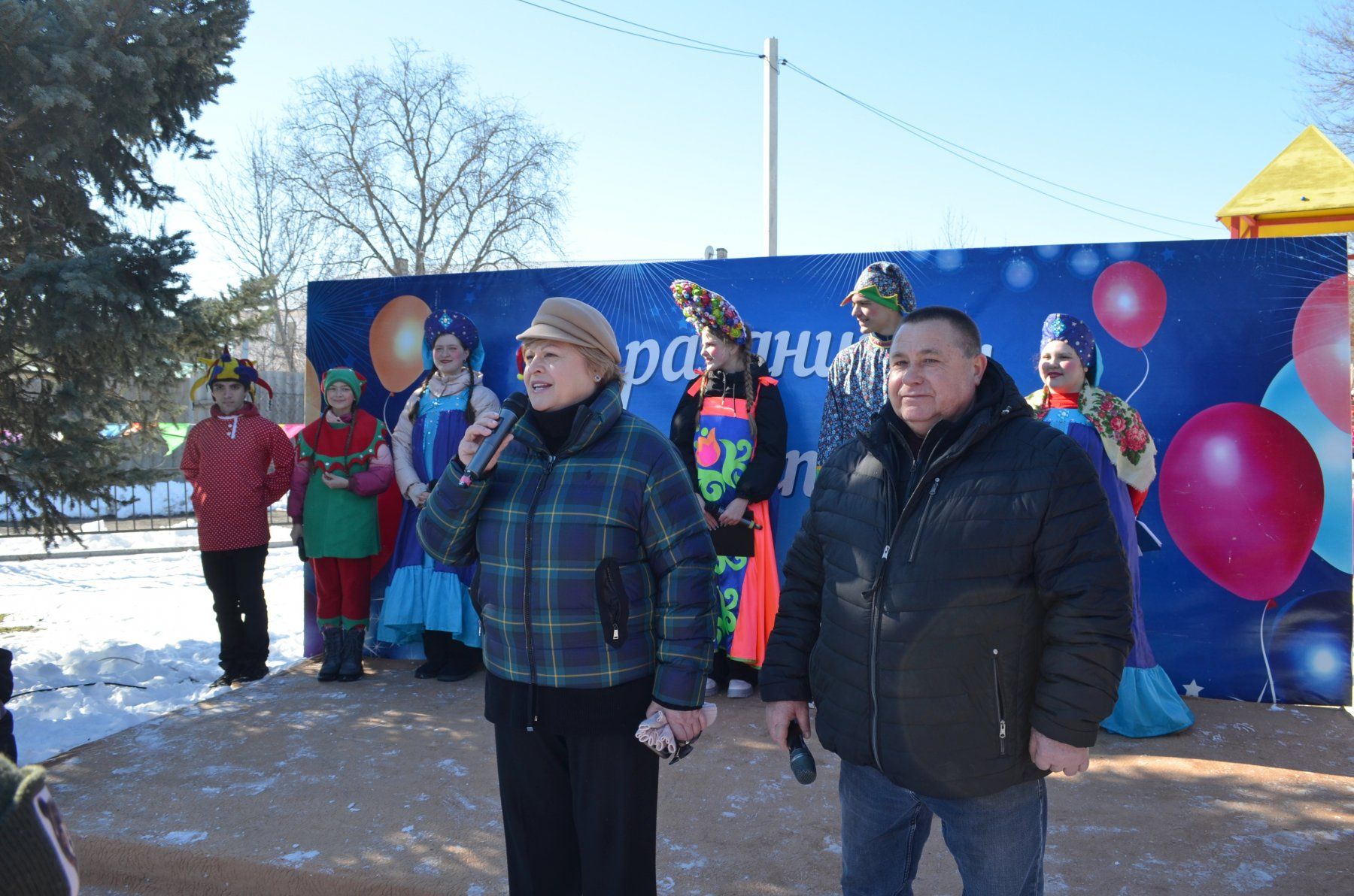 «Это была Масленичная неделя, и я думаю, что она прошла у всех дружно, что все наелись блинов, что все встречались и радовались. А сегодня последний день Масленицы, когда просят друг у друга прощения, Прощеное воскресенье. И мы с главой поселка Андреем Амбросьевичем по народной традиции просим у вас прощения, если мы вольно или невольно вас обидели. И сегодня, я думаю, все со мной согласятся, мы благодарим господа Бога, что он в этом году послал нам такую красивую зиму, что детки поиграли в снежки, покатались на санках. Мы желаем вам самого доброго, всем счастья, любви, добра, радости. Любим вас! И с праздником!».