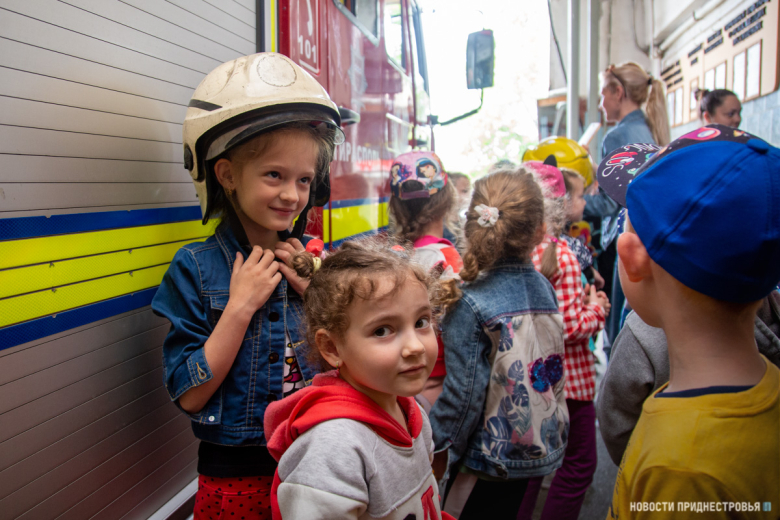 Тирасполь, 15 июня. /Новости Приднестровья/. Сегодня в пожарной части Тирасполя было по-особенному шумно и суетливо. Не подумайте, что в столице или близлежащих сёлах произошли возгорания. Всего-навсего в СВПЧ-1 на экскурсию пришли 24 воспитанника детского сада № 17. Посещение части стало возможным благодаря смягчению карантинных ограничений, действующих из-за пандемии коронавируса.