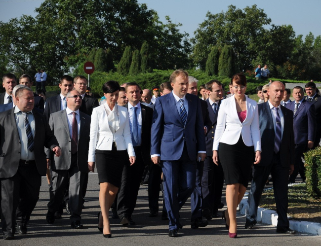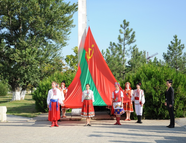 После возложения цветов, в котором наряду с руководством Приднестровья приняла участие российская делегация в составе депутатов Госдумы и Федерального собрания РФ, а также делегации Абхазии и Южной Осетии состоялась церемония поднятия государственного флага ПМР.