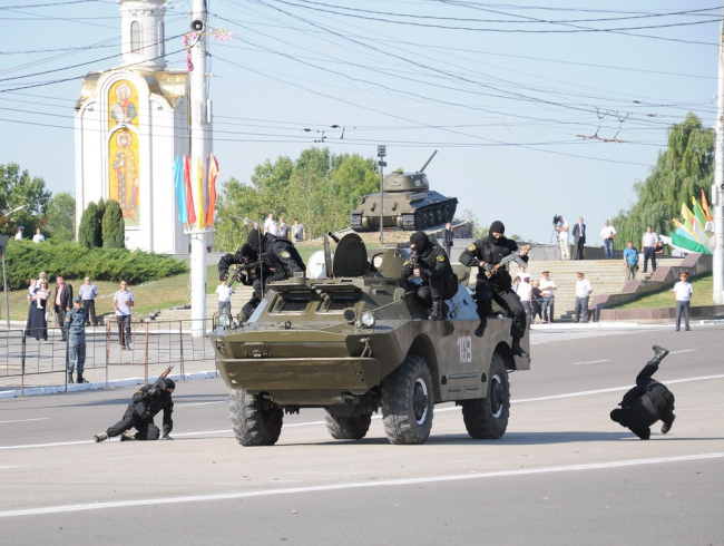 На центральной площади Тирасполя также прошли показательные выступления спецподразделений Министерства внутренних дел и Министерства обороны.
