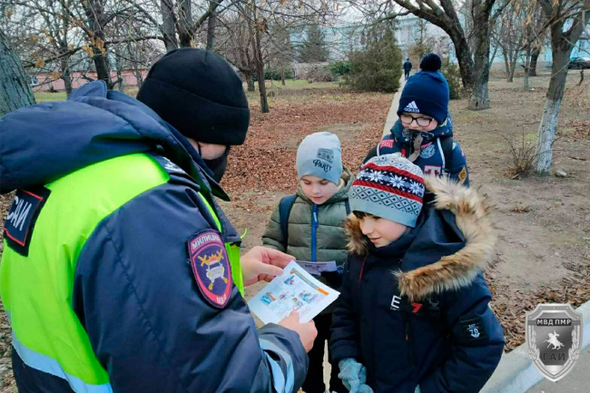 Чтобы уменьшить риск опасных ситуаций, вблизи школьных и дошкольных образовательных учреждений, досуговых центров несут службу сотрудники ГАИ. Они напоминают юным приднестровцам о поведении на дорогах зимой, раздают им тематические памятки.