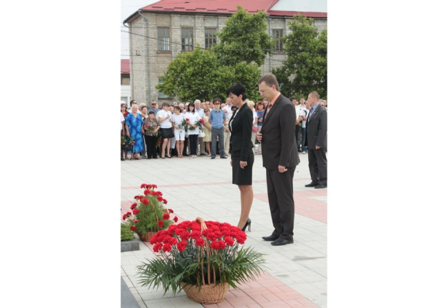 По завершении митинга состоялась церемония возложения цветов. Корзину с цветами от Главы государства возложила руководитель Администрации Президента ПМР Надежда Баранова.