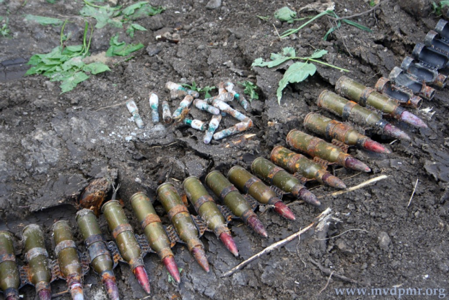 Около 16:00 уже в городе Тирасполе, в районе объездной дороги по ул. Шевченко, рабочие при проведении экскаваторных работ обнаружили 33 патрона для крупнокалиберного пулемёта и 13 запалов к учебно-тренировочным гранатам.