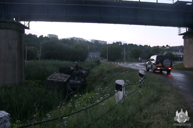 Рыбница, 11 июля. /Новости Приднестровья/. Вчера вечером в Рыбнице КамАЗ с прицепом, гружённый 22 т металлолома, опрокинулся в реку Сухая Рыбница.