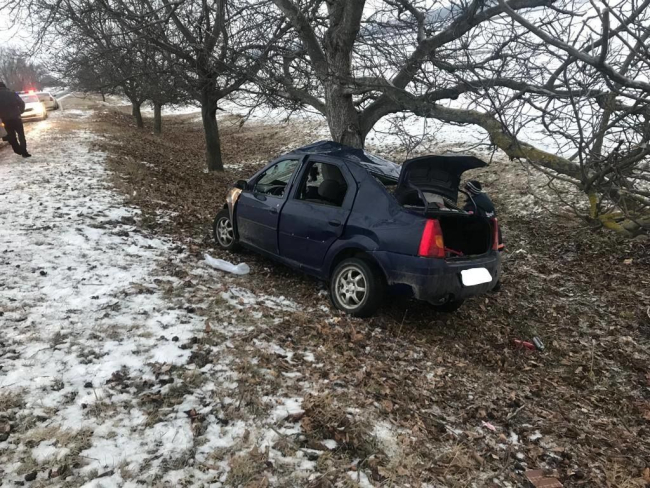 ДТП произошло в Молдове: автомобиль на летней резине попал на скользкий участок дороги и въехал в дерево