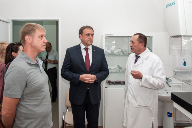 «Я вспоминаю, как больше 3 лет назад на территории этого лечгородка «Евразийская интеграция” реализовала свой самый первый проект — это передача 8 автомобилей скорой помощи и реанимобилей приднестровскому Министерству здравоохранения. Это был самый первый шаг, на сегодняшний день мы сдаём уже 10-й объект социального назначения. Корпус химиотерапии был закончен в самом начале этого года, и несколько месяцев он уже работает в тестовом режиме. Мы убедились, что всё, что мы сделали, качественно, объект оборудован необходимым оборудованием, и все технологические процессы полностью соответствуют российским нормам и стандартам», — подчеркнул директор АНО «Евразийская интеграция» Александр Аргунов.