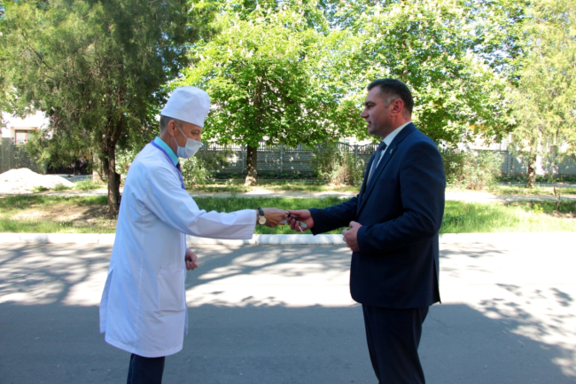 Рыбница, 13 мая. /Новости Приднестровья/. Автопарк рыбницкой станции медицинской помощи пополнился новым автомобилем. Машину приобрели за счёт средств Фонда капвложений. Сегодня ключи от спецтранспорта глава Госадминистрации Рыбницы Виктор Тягай передал главврачу районной больницы Владимиру Иващенко.