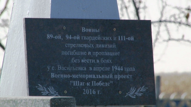 «К нам обратились наши коллеги — поисковики из Урала, города Челябинска, с просьбой установить места захоронения воинов 89-й гвардейской стрелковой дивизии. Они пишут книгу о Великой Отечественной войне и собирают информацию об освобождении советских республик от фашизма. В процессе выявления имён погибших воинов этой дивизии стали восстанавливать и других погибших солдат и офицеров. В результате проведения совместной поисковой работы удалось установить имена 65 советских воинов, которые покоятся в братской могиле села Васильевка», — рассказал руководитель поискового отряда «Август» (г. Кишинёв) Василий Сеньковский.