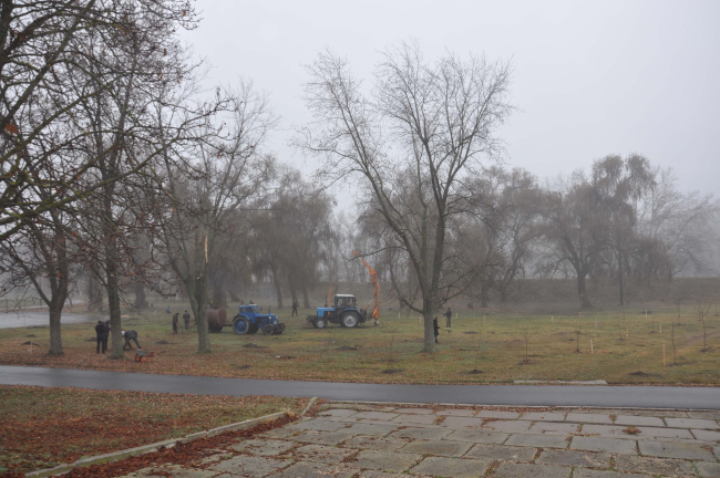 Сегодня деревья высаживали в районе городского стадиона