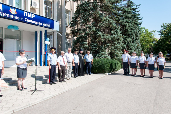 Кульминационный момент — официальное открытие управления. Право перерезать «красную ленту» предоставили министру МВД ПМР Руслану Мове и главе госадминистрации города Слободзея и Слободзейского района Василию Тищенко.