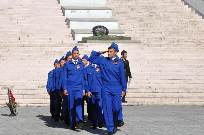 По традиции торжественное построение юнармейцев проходило на Кицканском плацдарме