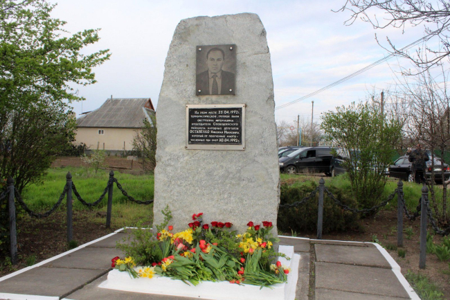 На этом месте 29 лет назад было совершено покушение на жизнь одного из авторитетных лидеров того времени Николая Ивановича Остапенко, который занимал должность председателя райисполкома Слободзейского райсовета. Он активно боролся за мир на берегах Днестра, горячо отстаивал принципы интернационализма. 23 апреля 1992 года членами террористической группы «Бужор» был в упор обстрелян служебный автомобиль Николая Остапенко. 30 апреля он скончался от многочисленных ранений. Ему было тогда всего 38 лет.