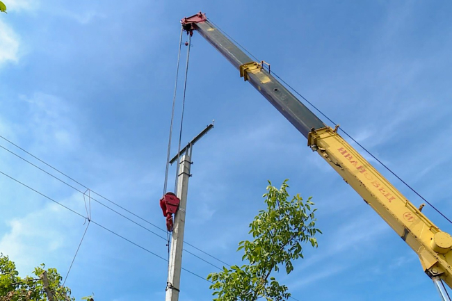 Слободзейский район, 26 июня. /Новости Приднестровья/. В Слободзейском районе полным ходом идёт реконструкция линии 10 кВ с совместным подвесом линиями 0,4 кВ. Так, в частности, на участке, по которому осуществляется электроснабжение с. Карагаш, заменено около 400 метров. Старые, отжившие свой срок деревянные опоры меняют на новые железобетонные.