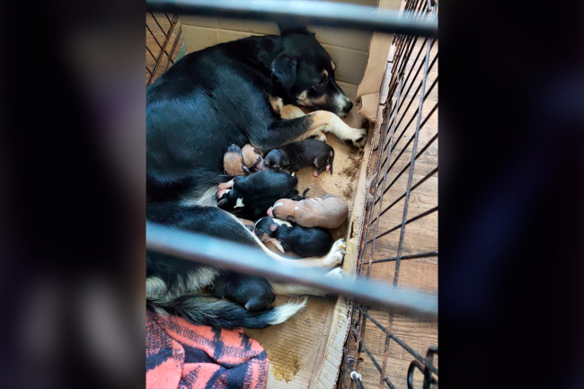 Ночью везти собаку со щенками в приют было невозможно: дороги замело. Поэтому время до утра они провели у неравнодушных людей. На следующий день волонтёры забрали животных в Центр помощи.