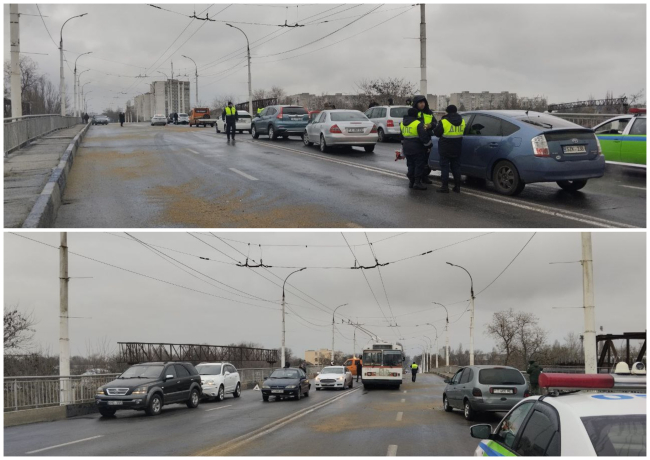 Тирасполь, 5 декабря. /Новости Приднестровья/. В столице сегодня утром на мосту по улице Шевченко произошло ДТП с участием более 10 автомобилей. Движение на этом участке было временно перекрыто. Могли проехать только троллейбусы, остальных водителей просили выбирать другие маршруты в объезд. Сейчас движение транспорта возобновили.