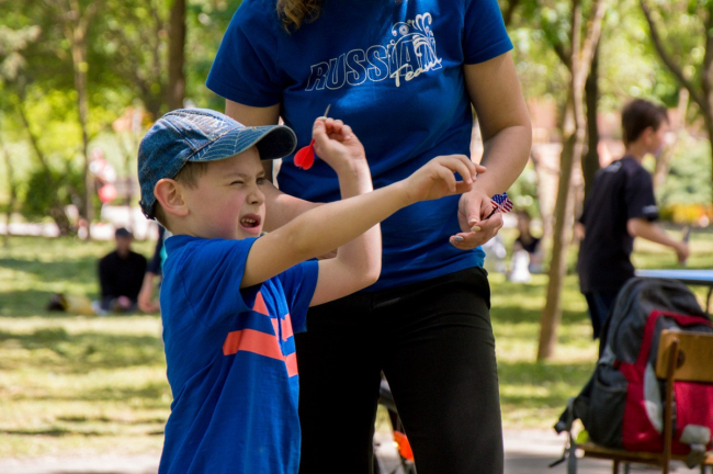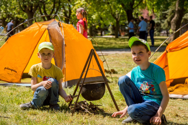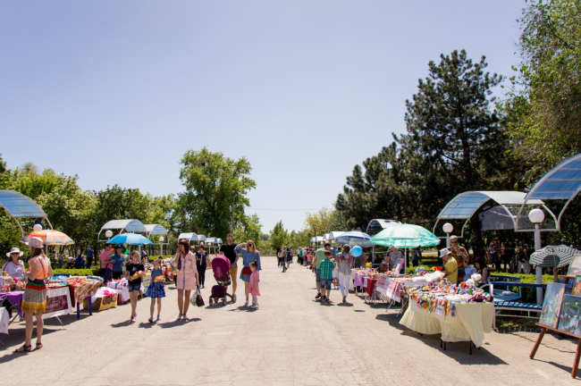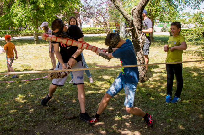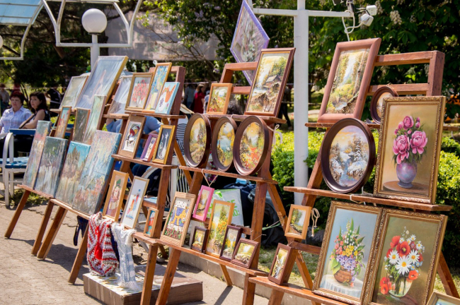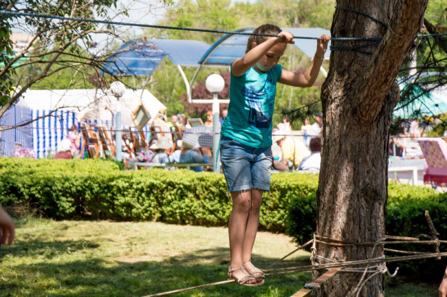 Чуть ниже, в сквере де Волана, раскинулась выставка поделок мастеров художественного и декоративно-прикладного творчества, где были представлены самые разнообразные изделия. А в тени деревьев для детворы организован спортивный городок, где ребята вдоволь могли полазить по импровизированным препятствиям, почувствовать себя самыми настоящими туристами.