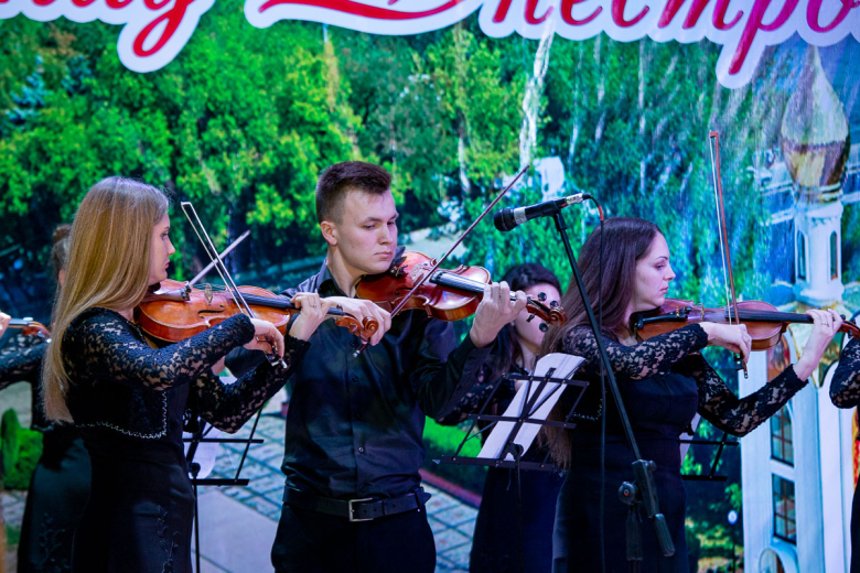 Продолжился торжественный вечер праздничным концертом. На сцене Дворца культуры выступил заслуженный муниципальный камерный оркестр вместе с солисткой Лидией Сизенёвой. Зажигательный гопак зрителям подарил заслуженный муниципальный ансамбль народной музыки и танца «Ватра».