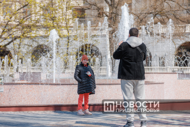 Пока специалисты проводили тестирование фонтана, у тираспольчан появилась возможность помедитировать, глядя на его струи, и сделать фото на память.