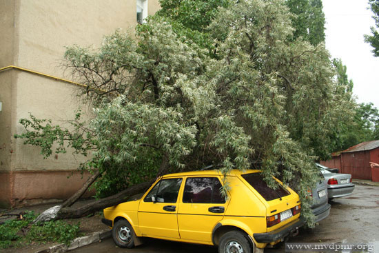 Тирасполь, 30 июня. /ИА «Новости Приднестровья"/. Сообщение о том, что в Тирасполе на ул. Юности из-за дождя и сильного ветра на автомобиль марки Volkswagen Golf упало дерево, поступило оперативному дежурному аварийно-спасательного подразделения УпЧС МВД ПМР 28 июня в 15:45. Спасатели совместно с сотрудниками МУП «Спецавтохояйство» распилили дерево, а также отбуксировали машину в безопасное место, сообщает пресс-центр МВД.