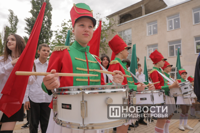 Программа Последнего звонка там, как всегда, насыщенная. Флаг Приднестровья на здании школы развернули скалолазы, праздничное выступление подготовили барабанщицы. Выпускники передали символический Огонь знаний ученикам родной школы.