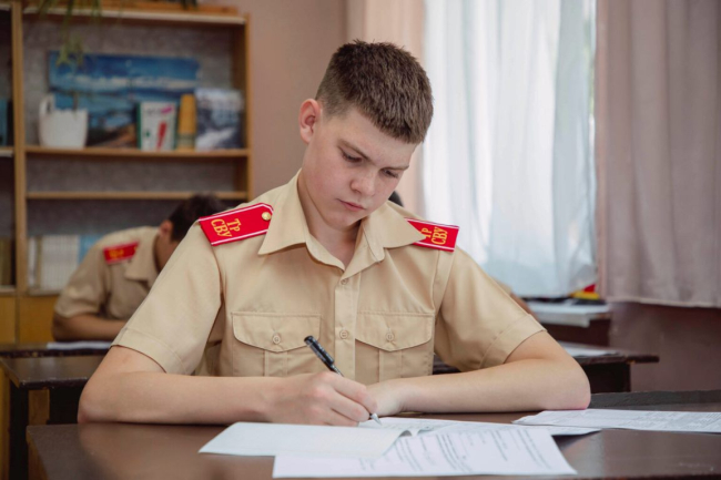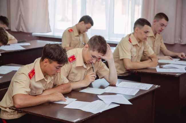 Суворовцы сдают экзамены по русскому языку и математике, которые проходят в письменной форме, а также два предмета на выбор – в устном формате.