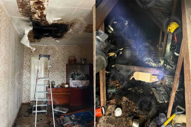 Сначала пытались справиться своими силами, потом вызвали пожарных. Они потушили огонь очень быстро. При этом, чтобы не допустить его распространения на весь дом, они разобрали потолок возле очага возгорания.