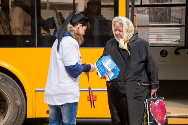 В самых оживленных общественных местах двух городов добровольцы распространили информационные листовки и флажки, говорили с прохожими о проблемах, с которыми сталкиваются семьи, воспитывающие детей с аутизмом
