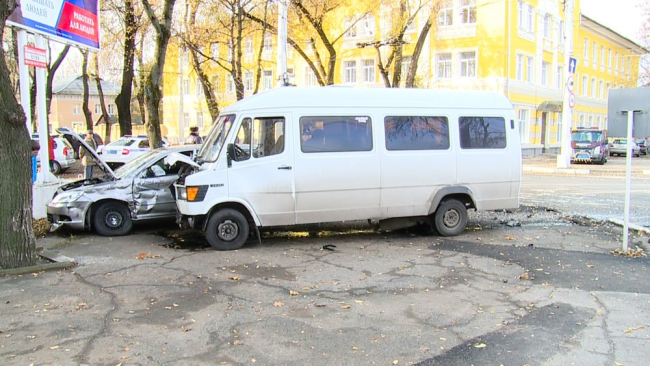 Тирасполь, 18 ноября. /ИА «Новости Приднестровья»/. Сегодня днём в столице на перекрестке улицы Мира и переулка Синева произошла авария. Столкнулись маршрутное такси №20 и легковой автомобиль «Шкода».