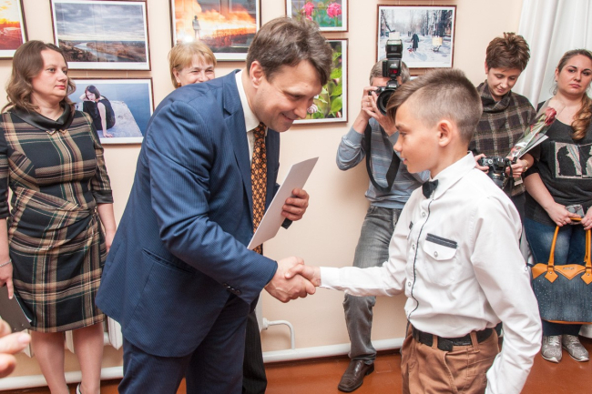 «То, что мы сегодня видим на стенах, — это мгновенья. Они вначале были запечатлены мимолётной вспышкой фотокамер в жизни отдельной личности, маленькой или взрослеющей. Но из этих мгновений ткётся один общий холст, которым можно покрыть всё наше Приднестровье. Хочу пожелать этому традиционному конкурсу дальнейших успехов и не останавливаться на достигнутом», — обратился к участникам фотовыставки Александр Щерба.