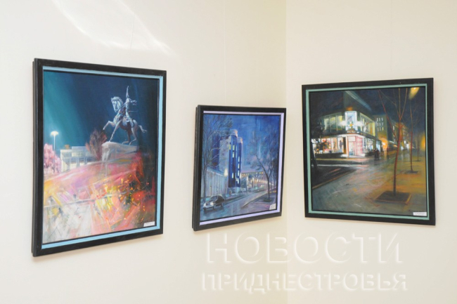 Большая часть из представленных картин – это пейзажи и натюрморты, выполненные в стиле экспрессивного реализма. Отдельное место на выставке отведено полотнам с изображением приднестровской столицы. Серия так и называется - «Вечерний Тирасполь». Это самые узнаваемые места и здания города в разные времена года, но в одно – вечернее – время. «Сначала у меня была серия работ под названием "Дневной Тирасполь", потом я решил превратить её в "Вечерний". Мне захотелось больше обогатить её за счёт освещения и цвета», - рассказал художник.