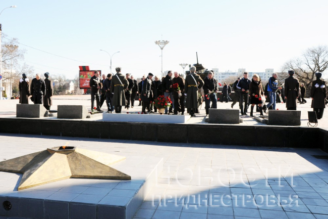 17 Мар., 2015, 11:14На столичном Мемориале Воинской Славы состоялась церемония возложения цветов. Под звуки военного оркестра цветы легли к мемориальным плитам погибших защитников Приднестровья