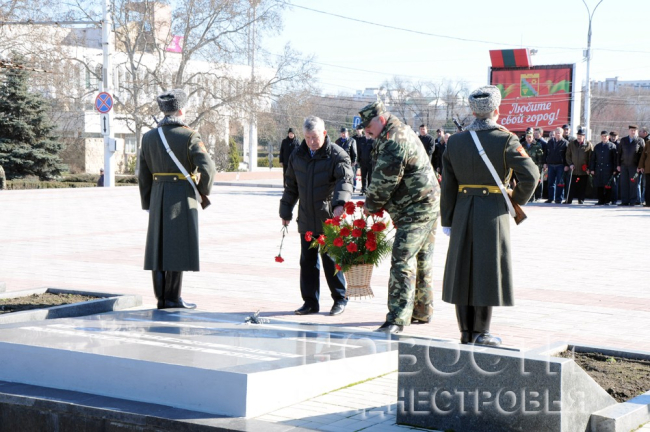 Почтить память павших героев пришли министр обороны Александр Лукьяненко, защитники Приднестровья и ветераны ополчения, офицеры Вооруженных сил ПМР.