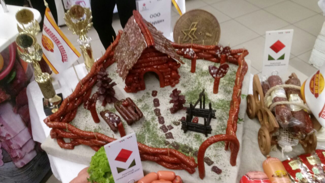 Что же касается юрлиц, то участниками дегустации стали бендерские ООО «Рилла» и «Протягайловские колбасы». Последнее в рекламных целях даже выставило сельский домик в миниатюре, кстати, вполне съедобный. В нём крыша, стены и даже изгородь сооружены из колбас.