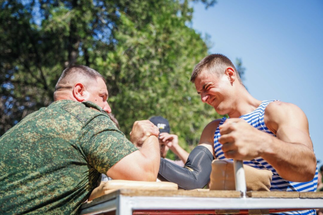 Тирасполь, 28 июля. /Новости Приднестровья/. В одной из частей Тираспольского гарнизона прошли соревнования по подтягиванию на перекладине, армрестлингу и перетягиванию каната. Спортивное событие приурочили к 28-й годовщине ввода Миротворческих сил Российской Федерации в Приднестровье.