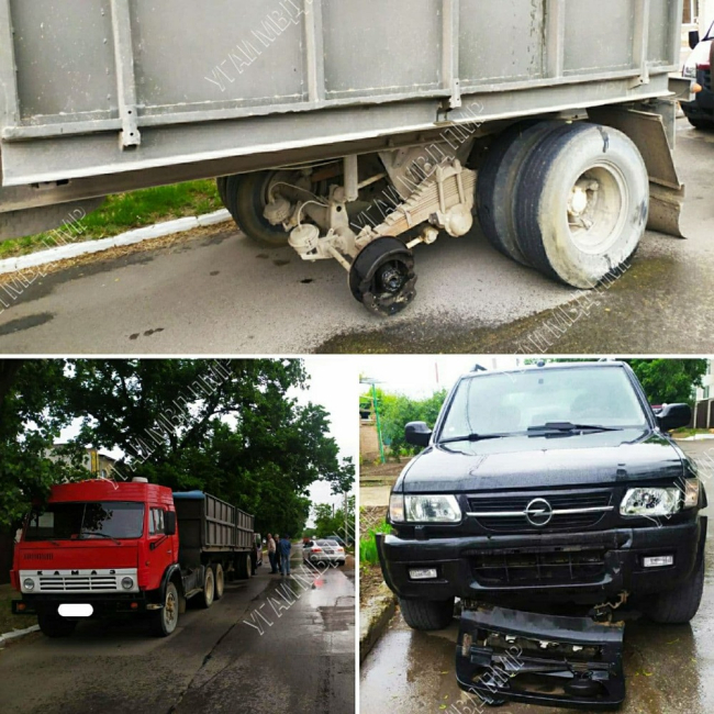 Тирасполь, 1 июня. /Новости Приднестровья/. Накануне около пяти вечера в Тирасполе на улице Гравийной водитель перед выездом не убедился в исправном состоянии автомобиля КамАЗ. В результате во время движения с левой полуоси полуприцепа грузовика открутились два колеса и повредили припаркованный Opel.