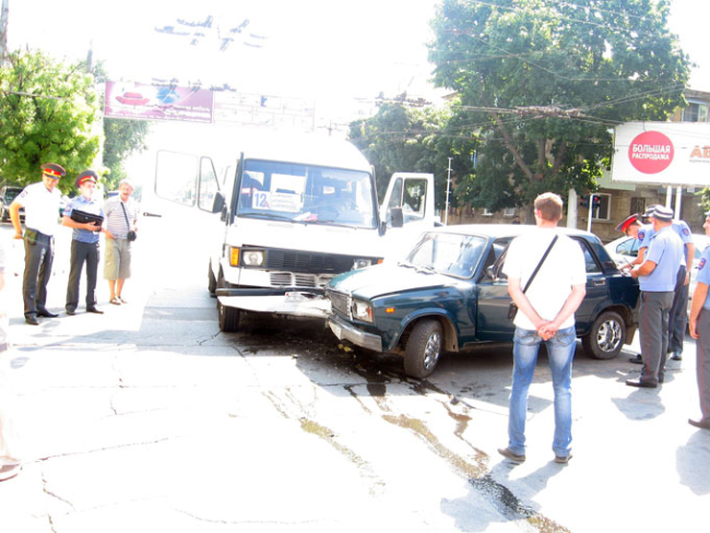 Около 11 часов утра в Тирасполе на пересечении улиц Карла Либкнехта и Манойлова «ВАЗ-2107» столкнулся с маршруткой марки «Мерседес». Водитель ВАЗа хотел повернуть налево, сигнал светофора разрешал маневр, но навстречу двигалось маршрутное такси, которому ВАЗ решил дорогу не уступать.