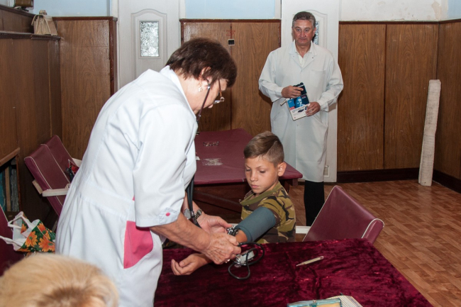 Построение, перекличка и далее — прохождение медицинского осмотра. По словам председателя центральной военно-врачебной комиссии Министерства обороны Евгения Кузьмина, сегодня проверяли общее состояние здоровья, измеряли температуру и давление.