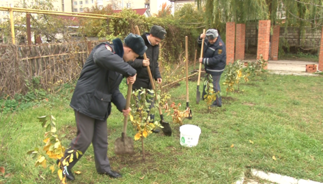 Тирасполь, 8 ноября. /Новости Приднестровья/. Сегодня на территории Управления по вопросам миграции МВД ПМР г. Тирасполя была разбита яблоневая «Аллея поколений», высадка которой была приурочена к 100-летию Советской милиции и 26-летию органов внутренних дел ПМР. В посадке 100 саженцев плодовых деревьев приняли участие руководитель МВД ПМР Руслан Мова, сотрудники миграции, а также ветераны ведомства.