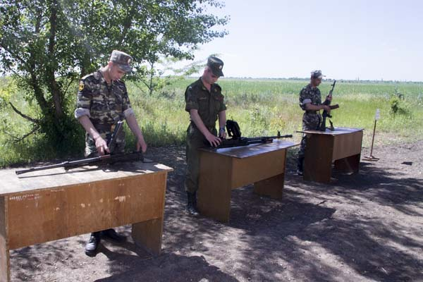 В огневом городке мотострелки изготавливались к стрельбе из положения лежа, выполняли неполную разборку автомата Калашникова и сборку после неполной разборки, приводили стрелковое оружие к нормальному бою.