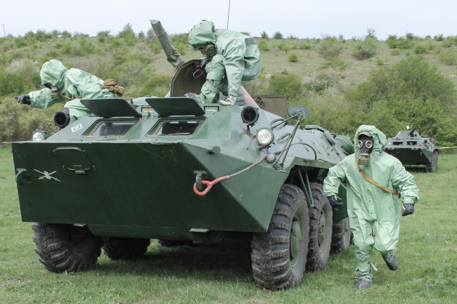 На сборах командиры и наводчики боевых машин выполняют нормативы по установке на БТР КПВТ (крупнокалиберный пулемет Владимирова танковый) и ПКТ (пулемет Калашникова танковый), разборке и сборке пулеметов, выверке прицельных приспособлений, загрузке боеприпасов и ведению огня из вооружения бронетранспортера, тренируются надевать общевойсковой защитный комплект, не покидая боевой машины.