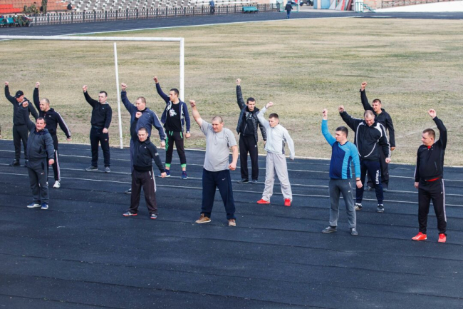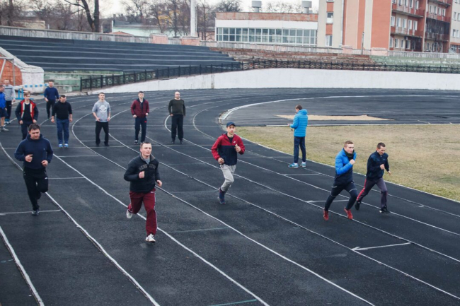 На Республиканском стадионе в столице с самого утра военнослужащие Тираспольского гарнизона бежали кросс, выполняли различные физические упражнения, играли в мини-футбол.
