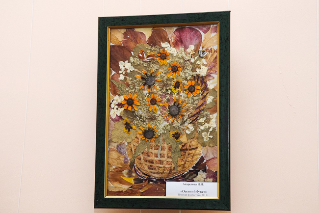 В галерее представлено более шестидесяти картин, созданных с помощью засушенных цветов и листьев. Авторы картин — участники народного коллектива декоративно-прикладного творчества «Артемида» из города Дубоссары.
