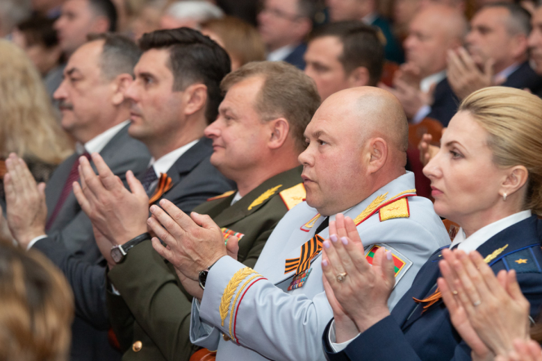 На мероприятии присутствовали Президент ПМР Вадим Красносельский с супругой, председатель Верховного Совета Александр Коршунов, премьер-министр Александр Мартынов, главы министерств и ведомств, жители и гости города и, конечно, ветераны.
